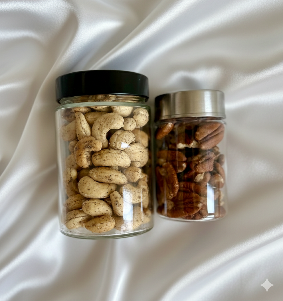 1 * Jar of Chilli Cashews/ Black Pepper Cashews/ Raw Almonds/ Walnuts